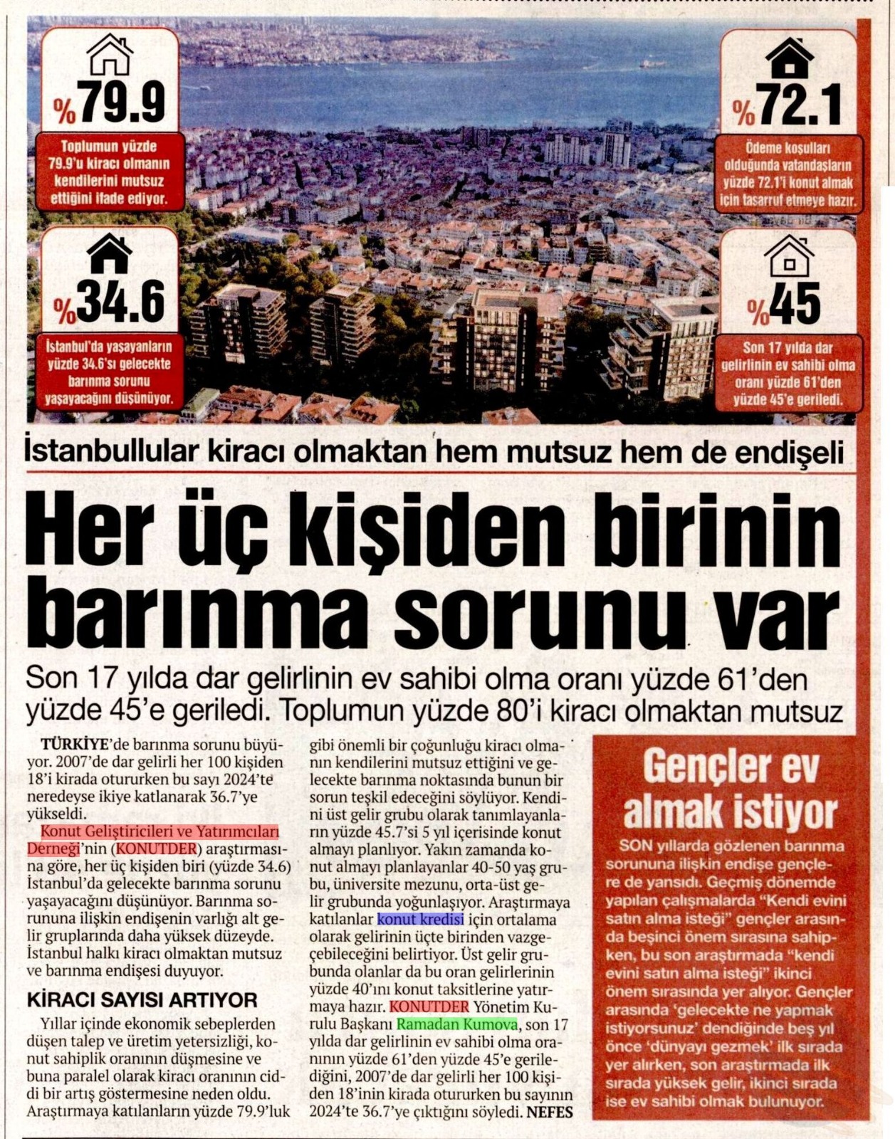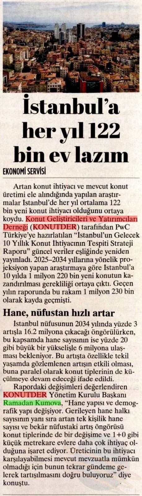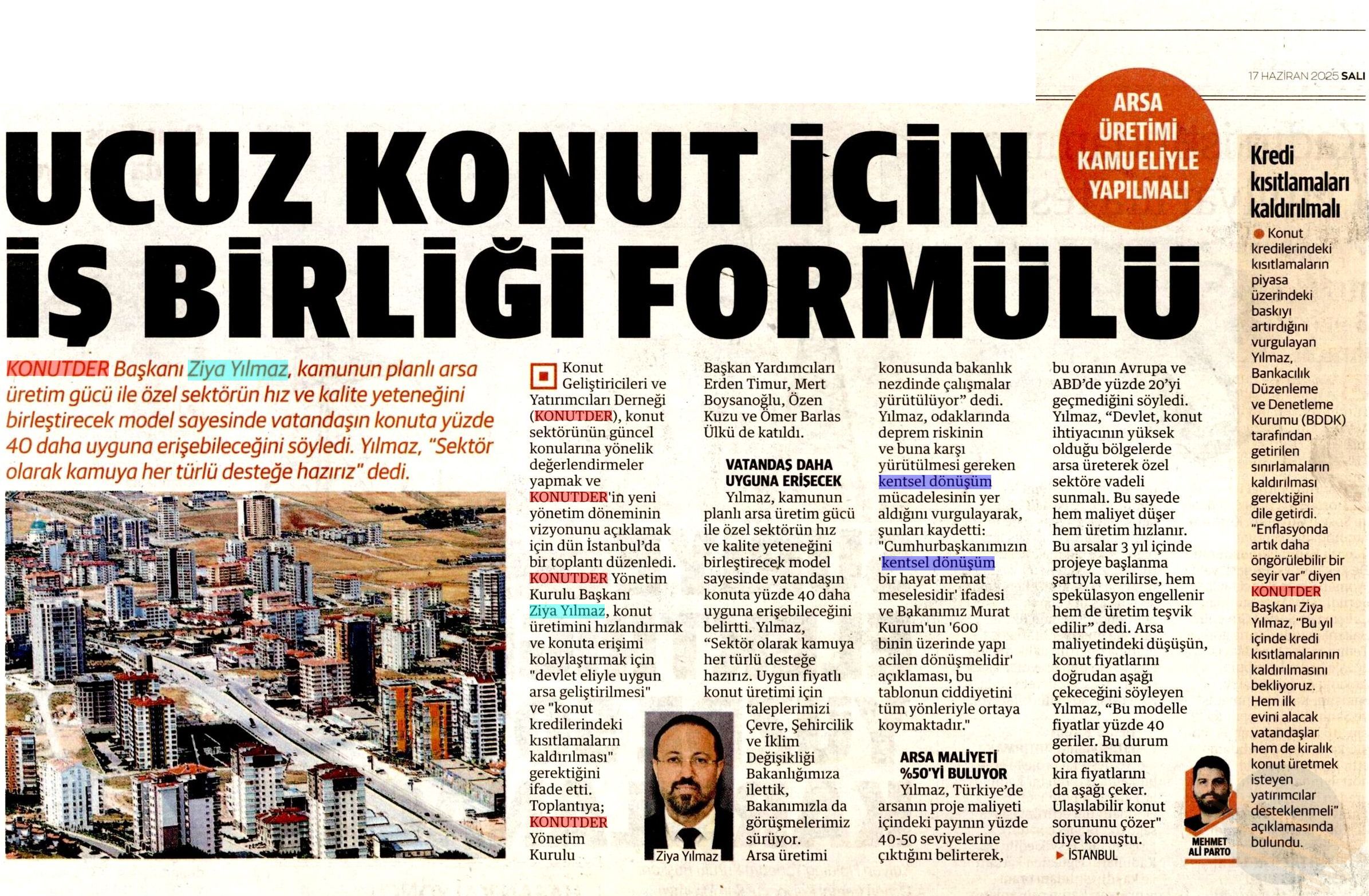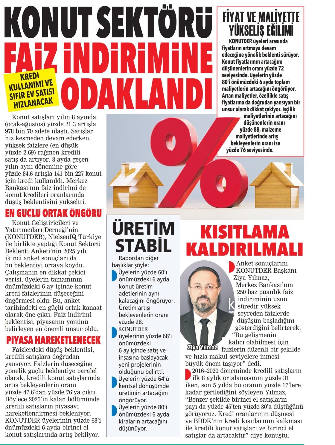 Yazılı Basın Yazılı Basın Faziler düşecek fiyatlar artacak 25.09.2025 DEVAMıNı OKU Konut geliştiriciler faiz düşecek diyor 25.09.2025 DEVAMıNı OKU Konut kredi faizi düşecek 25.09.2025 DEVAMıNı OKU Konut kredisi fazilerinde düşüş beklentisi arttı 25.09.2025 DEVAMıNı OKU Konut sektöründe faiz indirimine odaklandı 25.09.2025 DEVAMıNı OKU Konut ve kirada artış kapıda 25.09.2025 DEVAMıNı OKU Konutta faziler düştükçe kredili satışlar artacak 25.09.2025 DEVAMıNı OKU Konutta ibre kredili satışlara dönecek 25.09.2025 DEVAMıNı OKU Arsa verilsin, konutu yüzde 40 ucuzlatalım 20.06.2025 DEVAMıNı OKU Konutder'den iki stratejik öncelik 20.06.2025 DEVAMıNı OKU Arsa kamudan üretim özelden 20.06.2025 DEVAMıNı OKU Arsa Maliyeti düşmeli, Kredi sınırı kalkmalı 20.06.2025 DEVAMıNı OKU Konutder'den çift formüllü konut çözümü 20.06.2025 DEVAMıNı OKU Ev fiyatını yüzde 40 düşürecek model 20.06.2025 DEVAMıNı OKU Ev fiyatını düşürecek model 20.06.2025 DEVAMıNı OKU İkinci konutta kredi kısıtı kaldırılmalı 20.06.2025 DEVAMıNı OKU İkinci konutta kredi kısıtının kaldırılması için görüşüyoruz 20.06.2025 DEVAMıNı OKU Yüksek arsa maliyeti konuta erişimi sınırlıyor 20.06.2025 DEVAMıNı OKU Kamunun arsa üretim gücü özel sektörün hızıyla birleşmeli 20.06.2025 DEVAMıNı OKU Uygun konut üretimi için 2 öneri 20.06.2025 DEVAMıNı OKU Ucuz konut için arsa fiyatını düşünün 20.06.2025 DEVAMıNı OKU Ucuz konut için iş birliği formülü 20.06.2025 DEVAMıNı OKU Konutder başkanlığına Ziya Yılmaz seçildi 23.04.2025 DEVAMıNı OKU Konutder'in yeni başkanı Ziya Yılmaz oldu 23.04.2025 DEVAMıNı OKU Konutder'in yeni başkanı Ziya Yılmaz oldu 23.04.2025 DEVAMıNı OKU Konutder başkanlığına Ziya Yılmaz seçildi 23.04.2025 DEVAMıNı OKU Konutder'in yeni başkanı Ziya Yılmaz 21.04.2025 DEVAMıNı OKU Konutder'in yeni dönem başkanı Ziya Yılmaz oldu 21.04.2025 DEVAMıNı OKU Konutder'in yeni başkanı Ziya Yılmaz 21.04.2025 DEVAMıNı OKU Konutder'in yeni başkanı Ziya Yılmaz 21.04.2025 DEVAMıNı OKU Konutder'de başkanlığa Ziya Yılmaz seçildi 21.04.2025 DEVAMıNı OKU İstanbul'da yılda 122 bin konuta ihtiyaç var 21.04.2025 DEVAMıNı OKU İstanbul'da her yıl 122 bin konuta ihtiyaç var 21.04.2025 DEVAMıNı OKU İstanbul'dan göçle 127 bin konut boşalacak 21.04.2025 DEVAMıNı OKU İstanbul'a her yıl 122 bin ev lazım 21.04.2025 DEVAMıNı OKU İstanbul'un yılda 122 bin konuta ihtiyacı var 21.04.2025 DEVAMıNı OKU Göç istanbul'da 127 bin evi boşaltacak 21.04.2025 DEVAMıNı OKU Kiracılar mutsuz ev almak imkansız 25.02.2025 DEVAMıNı OKU Gençler kiradan korktu ev almak istiyor 25.02.2025 DEVAMıNı OKU Gençler 'harcamaları kısıp ev alırım' diyor 25.02.2025 DEVAMıNı OKU Gençlerin ikinci önceliği ev almak 25.02.2025 DEVAMıNı OKU Barınma korkusu büyüyor 25.02.2025 DEVAMıNı OKU Her üç kişiden birinin barınma sorunu var 25.02.2025 DEVAMıNı OKU Gençler konut almak için kredi bekliyor 25.02.2025 DEVAMıNı OKU Konut Üreticileri Faiz İndirimi Bekliyor 28.11.2024 DEVAMıNı OKU Yatırımcı Konuta Döndü Satışlar Arttı 13.11.2024 DEVAMıNı OKU Konut Satışlarında 22 Ayın Zirvesi 13.11.2024 DEVAMıNı OKU Konut Satışları 22 Ayın Zirvesinde 13.11.2024 DEVAMıNı OKU Konutta yılın en yüksek artışı 18.09.2024 DEVAMıNı OKU 'Faiz düşecek, zam gelecek' diyen konut alıyor 18.09.2024 DEVAMıNı OKU Nakit parası olan konuta koştu 18.09.2024 DEVAMıNı OKU Konut satışları yılın zirvesinde 18.09.2024 DEVAMıNı OKU Konut Hareketlendi 18.09.2024 DEVAMıNı OKU 'evde' arz sıkıntısı sürecek fiyat durağan seyredecek 15.07.2024 DEVAMıNı OKU Üreticiler faizde zirvenin görüldüğünü düşünüyor konutta kredili satışlar artacak 10.07.2024 DEVAMıNı OKU Kredili konut satışında artış bekleniyor 10.07.2024 DEVAMıNı OKU Fiyatlar aynı kalır kiralar yükselir 10.07.2024 DEVAMıNı OKU Konutta Cari Açık İkinci Elde Alarm 13.06.2024 DEVAMıNı OKU Üretimi destekleyen 2.el de düşerse konutta kriz hissedilir 13.06.2024 DEVAMıNı OKU Konutta ilk kez dış ticaret açığı gündemde 13.06.2024 DEVAMıNı OKU Türklerin yurtdışında konut yatırımı yabancı alımını geçecek 13.06.2024 DEVAMıNı OKU İkinci el krizi yolda 13.06.2024 DEVAMıNı OKU İkinci el düşerse konutta kriz hissedilir 13.06.2024 DEVAMıNı OKU Konut satışları ve üretiminde düşüş sürecek 22.02.2024 DEVAMıNı OKU Konutta kriz büyüyor 22.02.2024 DEVAMıNı OKU Konut satışlarında ve üretiminde düşüş devam edecek 22.02.2024 DEVAMıNı OKU Ev Sahibi Olmak Zorlaştı 21.02.2024 DEVAMıNı OKU Konut satışlarında ve üretiminde düşüş sürecek 21.02.2024 DEVAMıNı OKU Konutta Pazarlık Avantajı 17.02.2024 DEVAMıNı OKU Bu mirasa sahip çıkacağız 29.10.2023 DEVAMıNı OKU Destansı mücadele 29.10.2023 DEVAMıNı OKU Satılık konut sayısı zirvede 15.10.2023 DEVAMıNı OKU Yasanabilir sehirlerden olusan bir dunya yaratmalıyız 11.10.2023 DEVAMıNı OKU Kim kızarsa kızsın, ‘imar barışı' hataydı 06.10.2023 DEVAMıNı OKU Gayrimenkul sektörü yapılarda dönüşüm zirvesi’nde buluştu 01.10.2023 DEVAMıNı OKU Gayrimenkul sektörü yapılarda dönüşüm zirvesi’nde buluştu 01.10.2023 DEVAMıNı OKU Teşvikle, 7 milyon kiracıya ev umudu 23.09.2023 DEVAMıNı OKU Teşvikle, 7 milyon kiracıya ev umudu 23.09.2023 DEVAMıNı OKU Teşvikle, 7 milyon kiracıya ev umudu 22.09.2023 DEVAMıNı OKU Yapay zekaya yatırım atağı 17.09.2023 DEVAMıNı OKU İnanç kabadayı: %51'e çekilmeli 15.09.2023 DEVAMıNı OKU Vatandaş alamıyor müteahhit yapamıyor 04.09.2023 DEVAMıNı OKU Kobi Efor Ovp çalışmaları devam ediyor 01.09.2023 DEVAMıNı OKU Kentsel dönüşümde Manchester modeli bizde de iş yapar mı? 18.08.2023 DEVAMıNı OKU İnşaat işçisinin maaşı asgari ücreti üçe katla